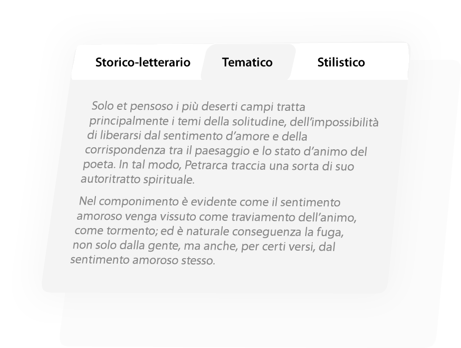 I commenti sono divisi in tre sezioni: storico-letterario, tematico e stilistico. Troverai subito le risposte che cerchi.